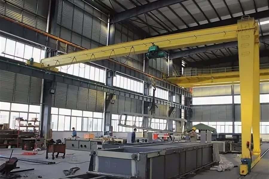♦The 6.3-ton single girder overhead crane is installed above the 3-ton single girder semi-gantry crane, with an independent runway beam and rail system.